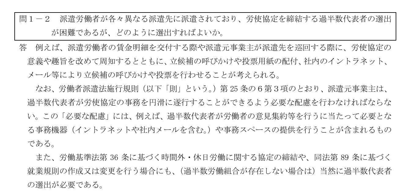 労働者派遣労使協定代表者選出方法
