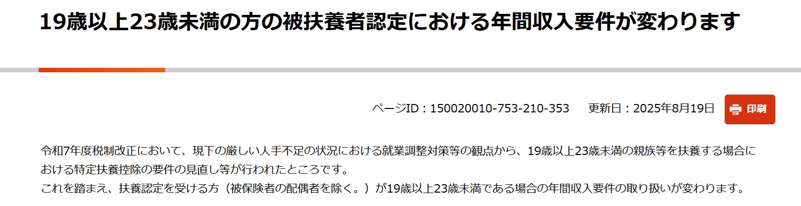 19歳以上23歳未満の方の被扶養者認定における年間収入要件が変わります