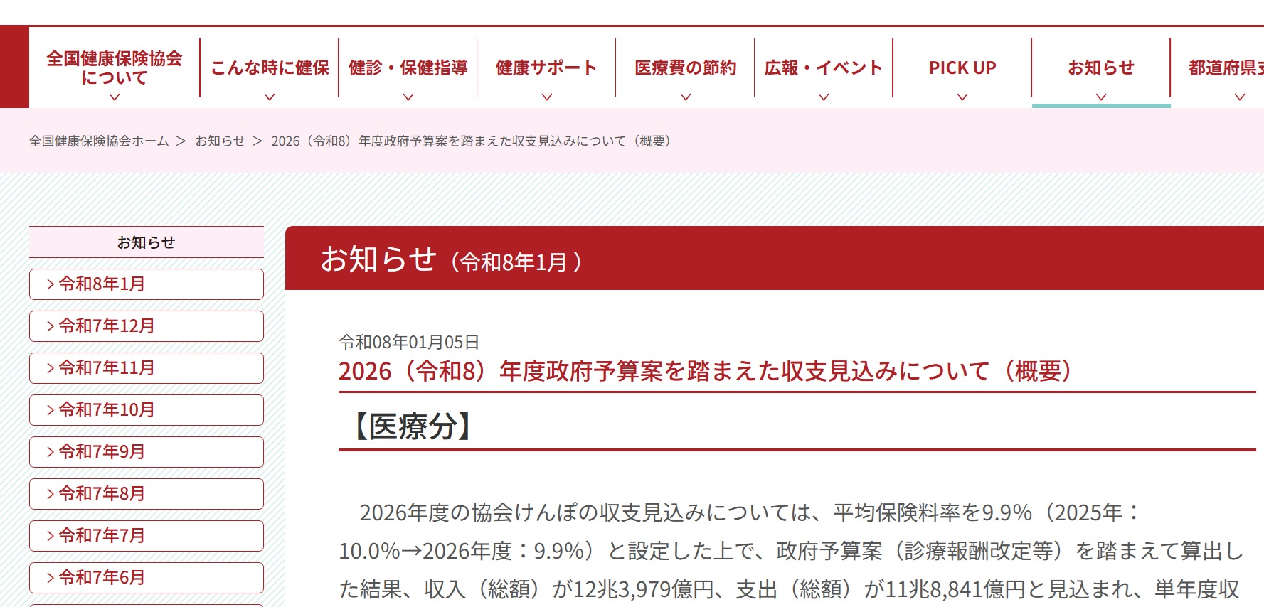令和8年度協会けんぽ保険料率、雇用保険料率(見込)